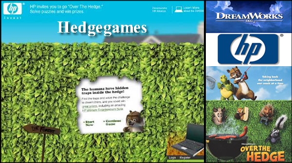 In 2006 I was asked to make 100 puzzles themed to the new Dreamworks film OVER THE HEDGE, for an online game site called HEDGEGAMES. The puzzle site was enormously popular and ended up attracting a community of over 70,000 active forum members working to solve my batch of 100 puzzles. |